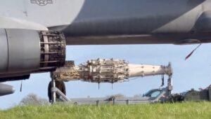At RAF Fairford today, ground crews removed long-range missile launchers from B-1B Lancer bombers and loaded them with JDAM precision-guided bombs. The aircraft sit parked close to the perimeter fence, deliberately visible to media and onlookers.