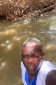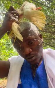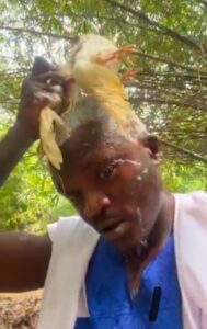 In the clip, the controversial artist is seen using a live ch?cken to ritually wash his head before tossing it into the river, all while chanting incantations. He boldly declares his demand: “I need ₦100 billion.”