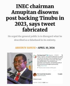 The attention of the Office of the Chairman, Independent National Electoral Commission (INEC), has been drawn to a malicious and coordinated campaign of calumny circulating on social media. The false claim alleges that the INEC Chairman, Prof. Joash Amupitan, SAN, has, in the past, endorsed a partisan post on the platform X (formerly Twitter).