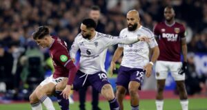 10 mins: Close! The first sighting of goal as the man in form Summerville teases Dalot and sends a cross in from the left. Bowen meets it with a stooping header, but he can only direct it wide.